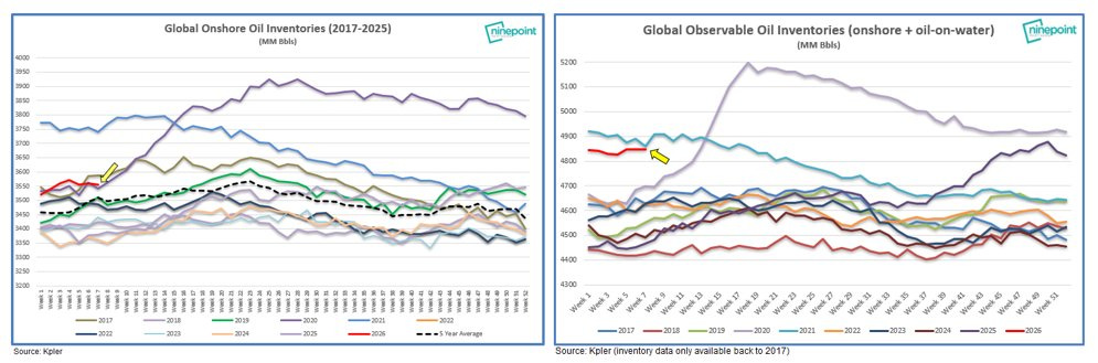 The agencies and analysts pushing the narrative of a massive oil surplus in Q1 2026 no longer have anywhere to hide. If their forecasts were correct, we should already have seen a crude inventory build of around ~170 Mb, yet the reality observed is only 23 Mb (in Q1 there is usually already a surplus due to weak demand, with the five-year average at 41 Mb). So where is the surplus?