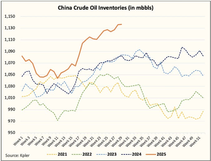 The downside to these positive developments lies in the sharp increase in Chinaâs inventories. It appears the country is taking advantage of current low prices to refill its Strategic Petroleum Reserve (SPR), which is introducing an unsustainable, one-off source of demand into the market and keeping conditions particularly tight. At the current rate of replenishment, this could continue for another 15 weeks, but after that, unless other sources of demand step in, the market could face a significant imbalanceâpotentially driving crude prices back down to $60/bbl.