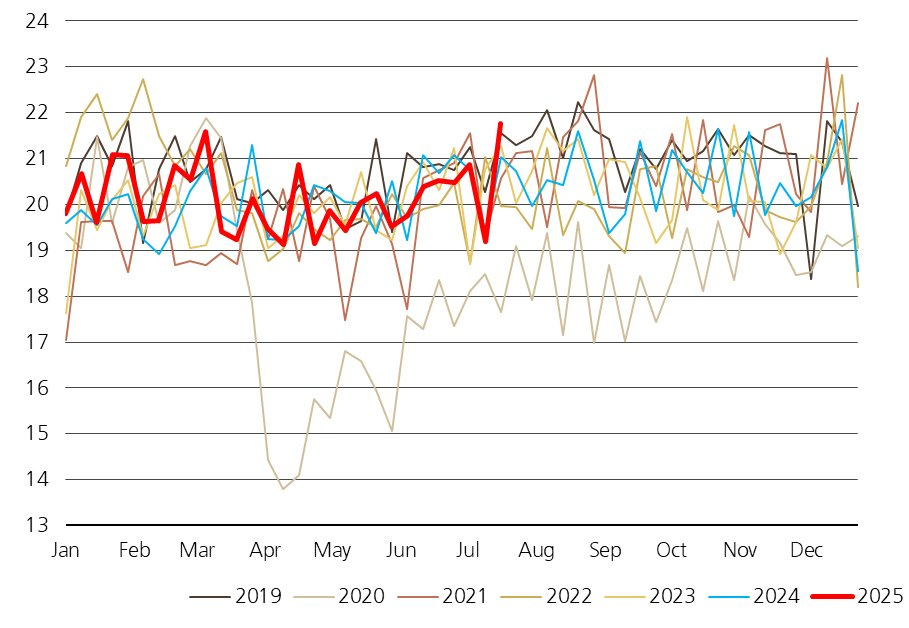He doesnât just win the narrative (I only lower tariffs if you open your market), but also puts pressure on the EU, South Korea, and others to pay up before 1 August. The incentive? A 15% tariff on your cars⌠or 25% (or more) if you prefer to negotiate from the back foot. Steel and aluminium (currently facing 50% tariffs) are not included, nor are semiconductors and pharmaceuticals, which will be negotiated separately. In other words, thereâs more headline material in the pipeline. â#MissionComplete,â said the Japanese negotiator. But for Trump, this was merely a warm-up. The real match is with Europe.