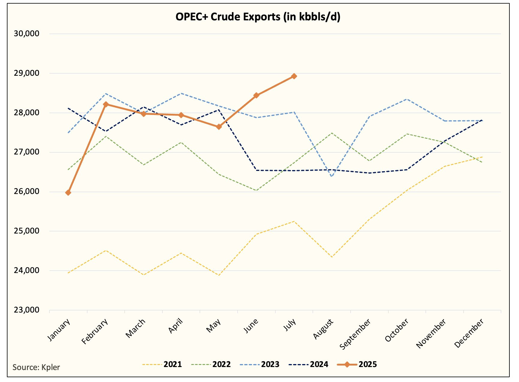 This stockpiling lines up perfectly with the rise in OPEC+ exports, raising doubts about the market balance in Q4 if demand fails to rebound. This concern is, in fact, the main reason behind the current price weakness and the bearish investor positioning.
